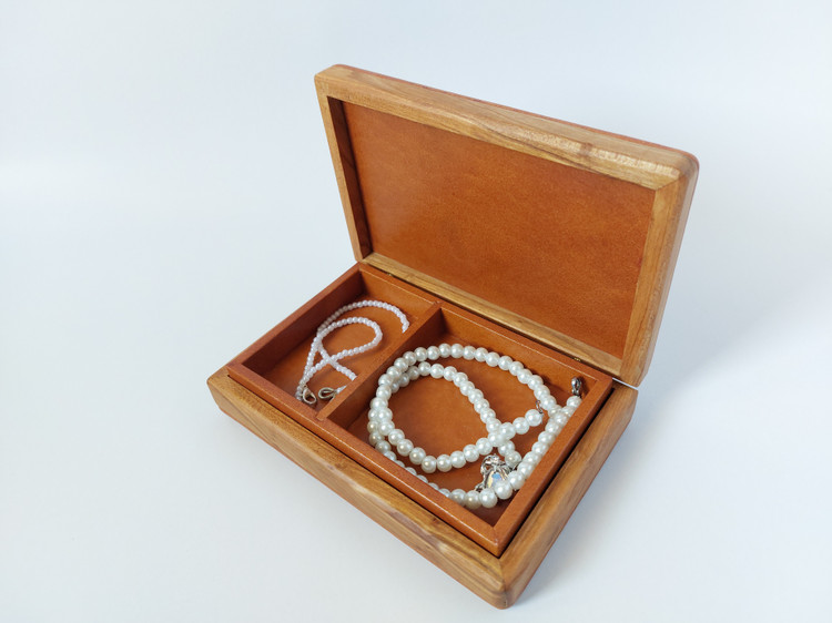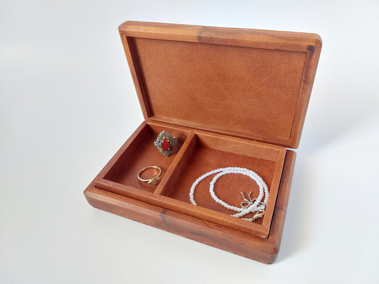 ترکیبی اصیل و چشمنواز از چرم طبیعی عسلی و چوب– طراحیشده برای نگهداری از زیباترین جواهرات شما