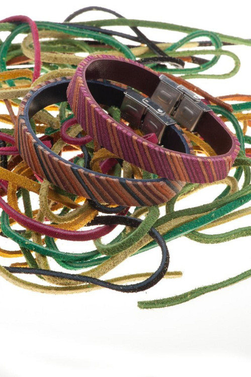 در این مدل دستبند ، نوارهای بسیار باریک اشپالت کنار هم چیده شده که هم طرحی منحصر به فرد ایجاد کرده و هم بسیار چشم نواز است.